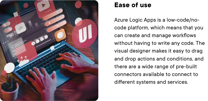 Azure Logic Apps provides pre-built workflows for a variety of scenarios, providing the basic structure and logic that you can build on.