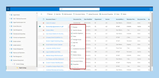 Note:Alert Preferences can also be attached to a document by navigating to the Nav Bar at the top of the folder. Select a document to animate the “Alert Me” button at the top.