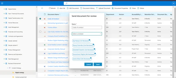 Note: Selection of multiple reviewers is possible. However, reviewers must be selected in chronological order of how you want the review workflow to go.
