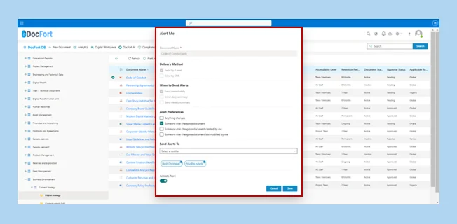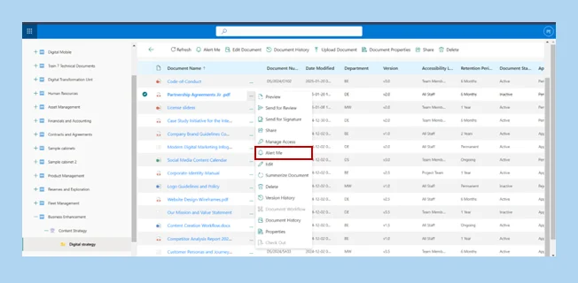 Note: Alert Preferences can also be attached to a document by navigating to the Nav Bar at the top of the folder.