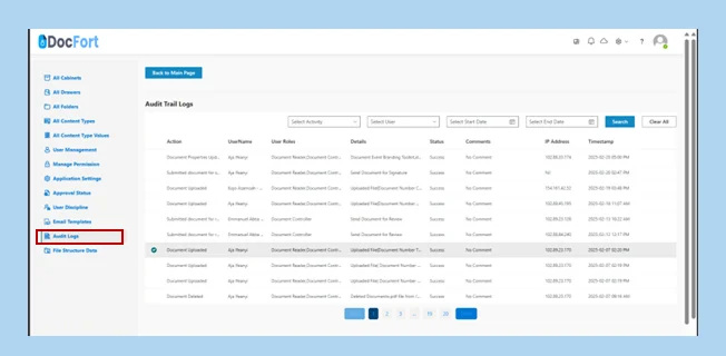 The Audit Log module tracks user activities, ensuring transparency and security. It records actions like document modifications and logins, helping organizations maintain compliance.