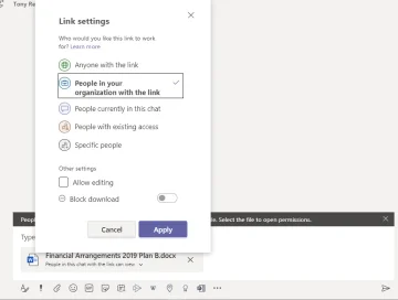Sharing features and tools are available for easy collaboration. For example, you can easily share a link to a SharePoint page from your Microsoft Teams chat