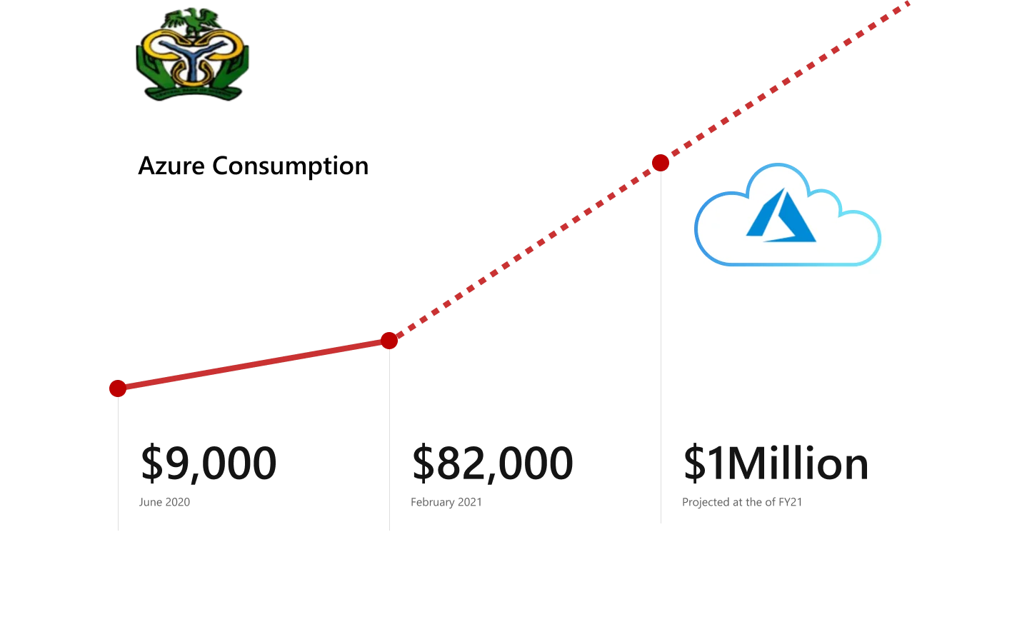 In the month of July 2020, Reliance Infosystems crafted a success plan with Microsoft Technology Strategist and Account Executive for CBN to drive Azure consumption. We beamed spotlights on all the technology initiatives happening within the organizations so we could translate same to Azure consumptions conversation. This strategy paid off. Today we are proud to see CBN ACR grow consumption from $9,000 USD in June 2020 to $82,000 in February 2021 representing a staggering 900% growth. By the end of FY21, we are projecting a $1m ACR from CBN. This would not have been possible without the relentless support from Babajide Adeyemo, Damola Solanke and Akin Banuso.